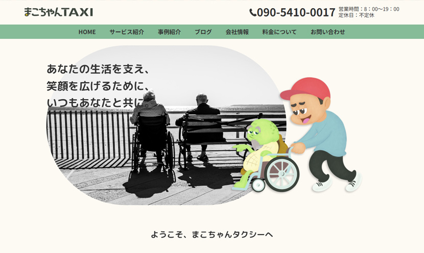 コーポレートサイト まこちゃんタクシー 様 まこちゃんタクシーは、岐阜県土岐市をはじめとした東濃地域の高齢者の方々や移動が難しい方々がもっと自由に、もっと快適に生活できるように、福祉タクシーサービスを提供しています。https://makochan-taxi.com/ 株式会社マルエス産業 様 株式会社 瓢屋 様